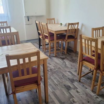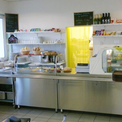 snídaně (smaženky, obložené housky, obložené chleby, míchaná vajíčka, vaječné omelety – sýrová, šunková, pečená sekaná, párky, klobásy)